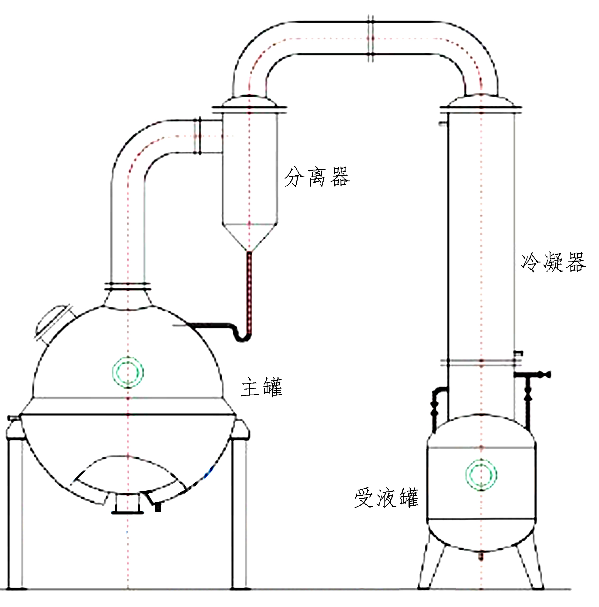 球形濃縮罐主要由濃縮罐主體、冷凝器、氣液分離器、受液桶四個部分組成,可用于制藥、食品、化工等行業對料液的濃縮、蒸溜及有機溶
